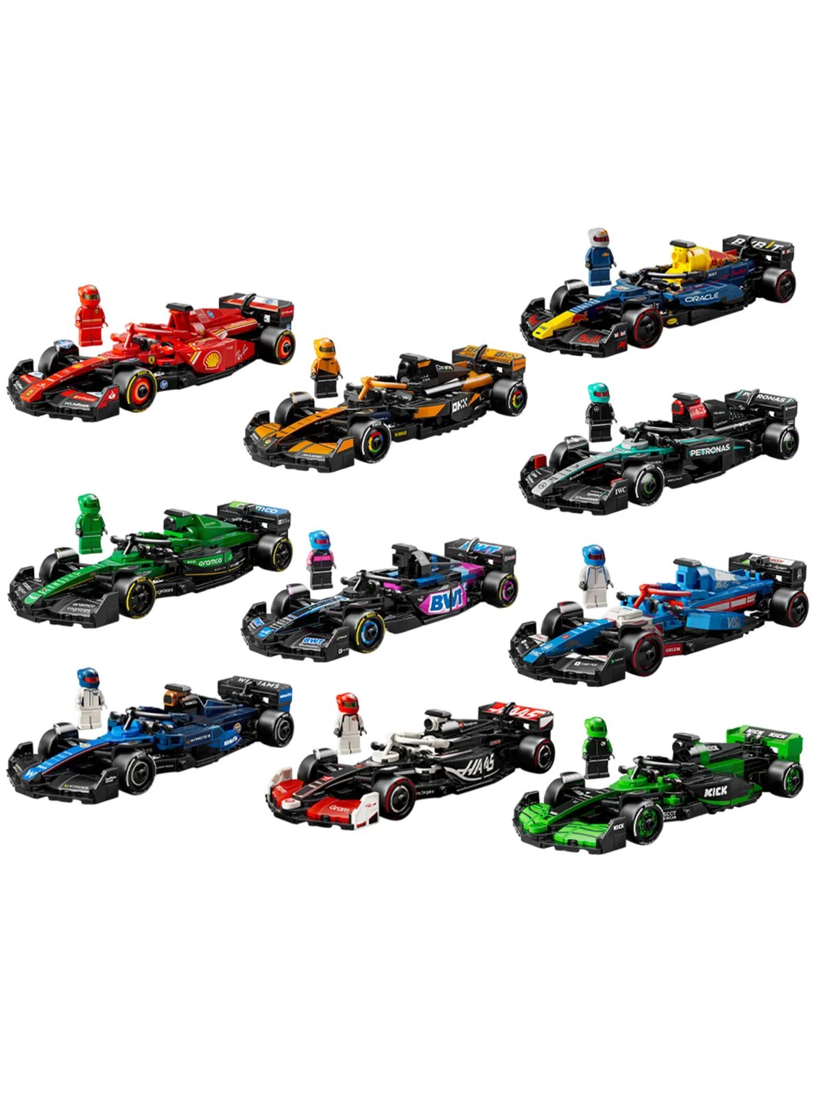 10 уникальных автомобилейКаждая модель сопровождается минифигуркой пилота. Детали отлично скрепляются друг с другом, совместимы с конструкторами других брендов.